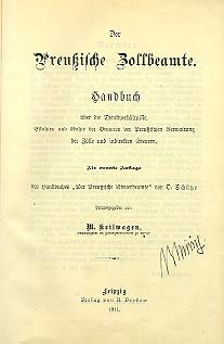 Zollbeamte 9. Auflage M. Keilwagen, 1911 Wenn ich beim Buch "Geschichte des Zollgrenzdienstes" von einem Standardwerk für zollgeschichtlich interessierte Leser gesprochen habe, muß ich hier sagen, daß es sich um ein Standardwerk für Zollhistoriker handelt. Hervorgegangen als 9. Auflage aus der Reihe "Der Preußische Steuerbeamte" von O. Schütze, wurde das Buch mit 1300 Seiten als Sammlung von Gesetzen und Verordnungen der Zollverwaltung der Zeit von 1911 angelegt. Sämtliche Vorschriften, die für den Zoll relevant waren, sowohl für die Abfertigung oder Durchführung der Dienstgeschäfte (z.B. Uniformierung, Waffengebrauch, Dienstordnung), aber auch für persönliche Belange der Beamten, wie z.B. Pensionierung, Versicherungen etc., sind im "Keilwagen", wie ihn Zollhistoriker nennen, enthalten. In der heutigen (Zöllner-)Zeit könnte man ggf. die VSF (Vorschriftensammlung der Finanzverwaltung) als Vergleich heranziehen. Zum Inhalt des Buches:In 31 Abschnitten, einigen Tabellen, einem Zeitfolgeregister und Sachregister sind alle dienstlichen Belange der Zöllner angesprochen. Sowohl der Innen-, Kassen, Grenzaufsichtsdienst als auch Vorschriften, auch diejenigen, die die persönlichen/privaten Belange der Beamten betrafen, können für das Jahr 1911 nachgeschlagen werden. Zusammenfassung aus meiner Sicht:Als Fundstelle von Vorschriften über die Dienstverhältnisse aus dem Kaiserreich war mir dieses Buch unentbehrlich. Auch die vorangegangenen Auflagen, die noch unter einem anderen Namen/Autor gedruckt worden waren, konnte ich mir per Fernleihe besorgen. So sind mir wertvolle Informationen "am Stück" zugänglich gewesen, die ich ansonsten kaum hätte finden können. Dieses Buch sollte sich jeder, der sich mit der Zollgeschichte der Kaiserzeit beschäftigen will, einmal ansehen.