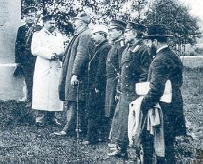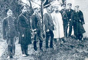 - Grenzsäule und was gibt es noch? ![]() Auf der 1903 verschickten Karte wird die Grenzsäule bei Prostken dargestellt, die nach dem aufgedruckten Hinweis im Jahre 1545 errichtet worden war. Es stellt sich aus heutiger zöllnerischen Sicht (denn Zöllner sind - und waren - Beamte und denken deshalb etwas komplizierter) natürlich die Frage, ob diese Grenzsäule nur eine Art Denkmal darstellen sollte, oder ob sie - wie die oben genannten Grenzschild, Schlagbaum, Grenzstein etc. tatsächlich einen Punkt der Grenze markieren sollte. Erkennen kann ich z.B. keine weiteren Grenzsteine oder Säulen, die in der damaligen Zeit ansonsten üblich waren. Ich gehe trotzdem davon aus, daß diese Grenzsäule auf der Grenze - aber als Denkmal gebaut wurde. Doch meine Zweifel: hat man schon 1545 auf der Grenze solche Denkmäler gebaut? Wo war denn die Grenzlinie und besaßen die versammelten Personen ggf. eine schriftliche Berechtigung, an dieser Stelle die Grenze zu überschreiten? Kleine Leute wurden - und werden noch heute - angezeigt, wenn sie es auch nur wagen, einen Schritt über die Grenze zu tun. und hier eine Ansammlung von Grenzflüchtlingen??? Sehen wir uns mal diese illustre Gesellschaft an, die sich auf dem Foto versammelt hat. Zunächst auf der linken Seite: Hier sind es (nach der Bildunterschrift) der preussische und russische Grenzkommissar (4. und 5. von links) sein sowie der russische Zolldirektor (ganz rechts außen). Die anderen abgebildeten Personen sind wohl weitere (niedriger eingestufte) russische und preussische Zöllner. Auf der rechten Seite der Säule: Hier sollen es (neben den nicht genannten Personen) der Russische Kreischef (2. von links), der preuss. Landrath (3. von links) und der russ. Dolmetscher sein (ganz rechts außen). Welche Abkommen sind hier wohl geschlossen worden? Oder war es wieder einer der berühmten Sonntagsausflüge ???